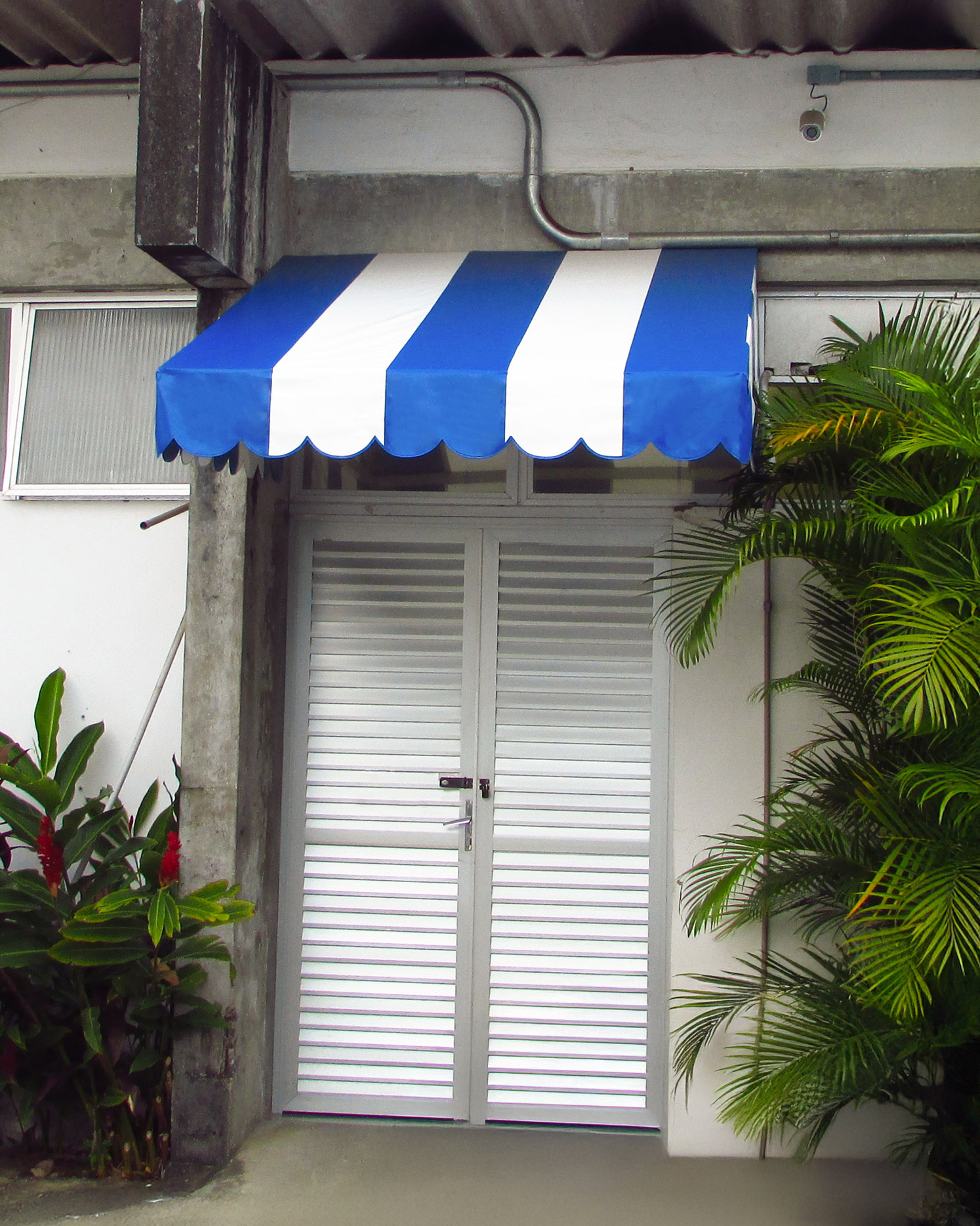 Esta cobertura para portas retas em lona listrada oferece proteção eficaz contra sol e chuva, garantindo conforto na entrada do seu imóvel. O design clássico com acabamento ondulado une funcionalidade e estética, sendo uma solução durável e de fácil manutenção para fachadas residenciais ou comerciais.