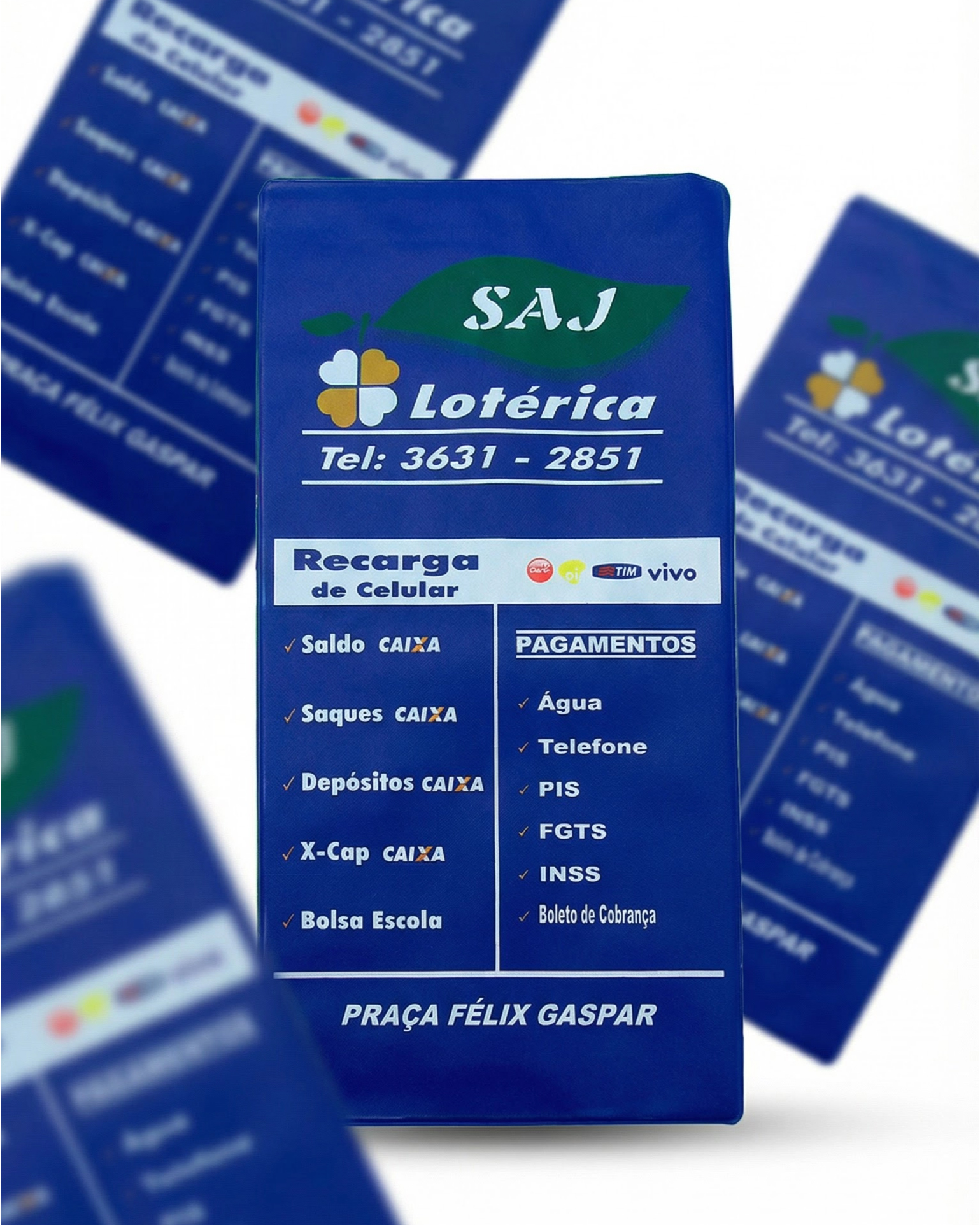 Porta bilhete lotérico prático e resistente para uso diário. Ideal para organizar apostas e divulgar serviços com clareza. Material durável com impressão nítida e excelente acabamento.