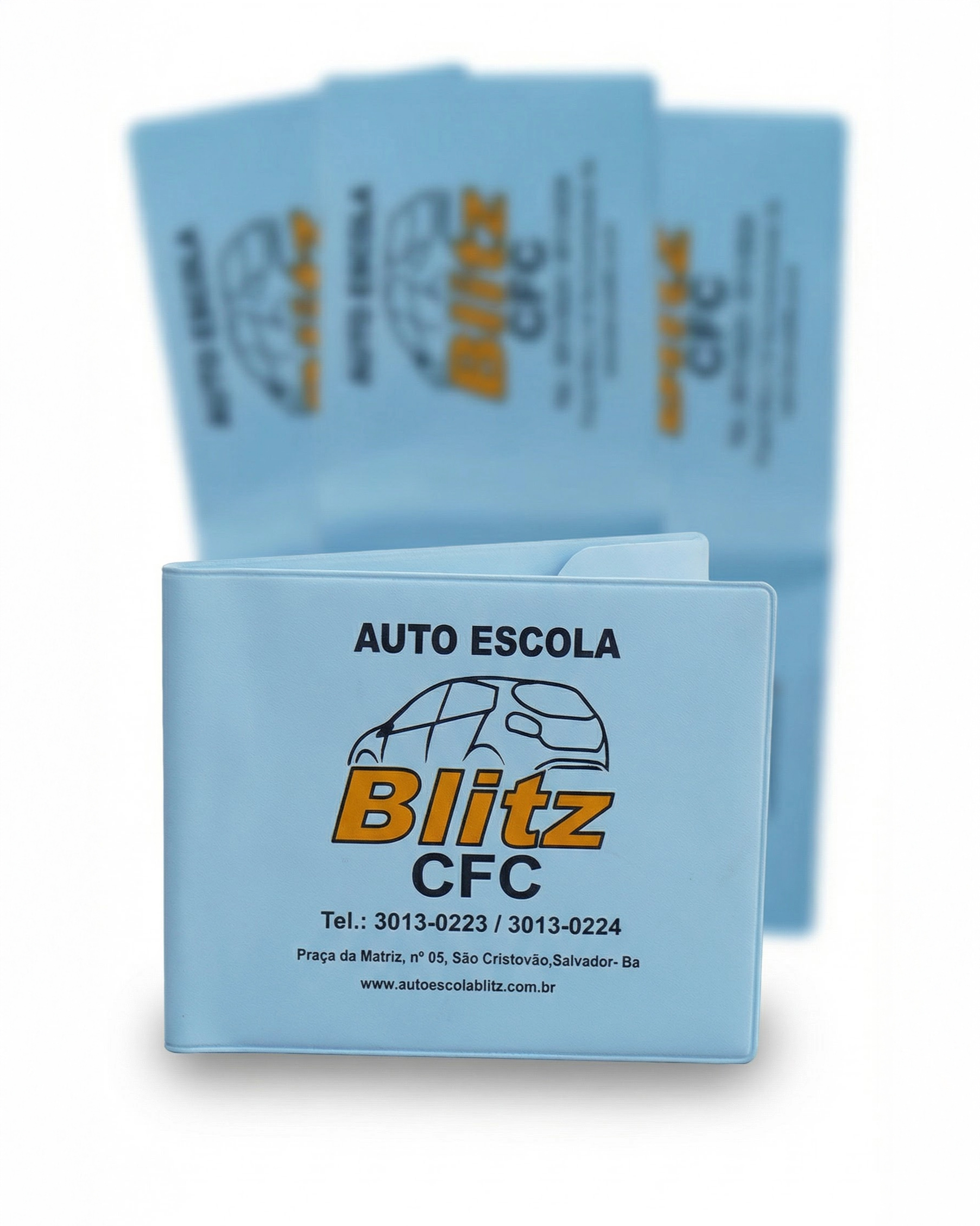 Proteção prática e durável para documentos veiculares, disponível em diversas cores para personalização. Excelente área de impressão para destacar dados de contato, logos de autoescolas ou concessionárias.