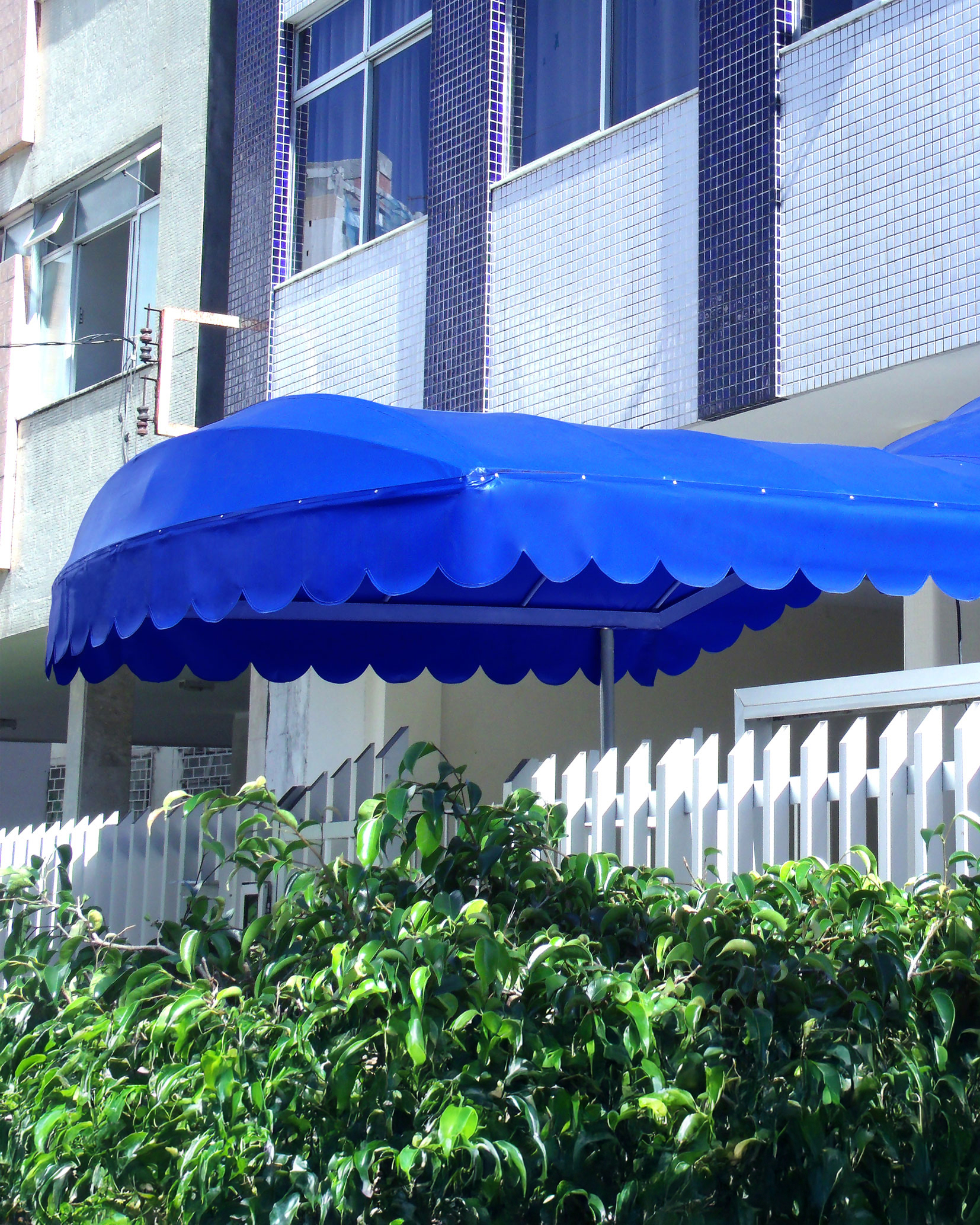 Esta estrutura em lona de alta resistência no modelo túnel é ideal para criar corredores protegidos e elegantes em fachadas de prédios ou estabelecimentos. Com design curvilíneo e acabamento ondulado, oferece proteção eficaz contra sol e chuva, valorizando a entrada com uma estética moderna e durável.